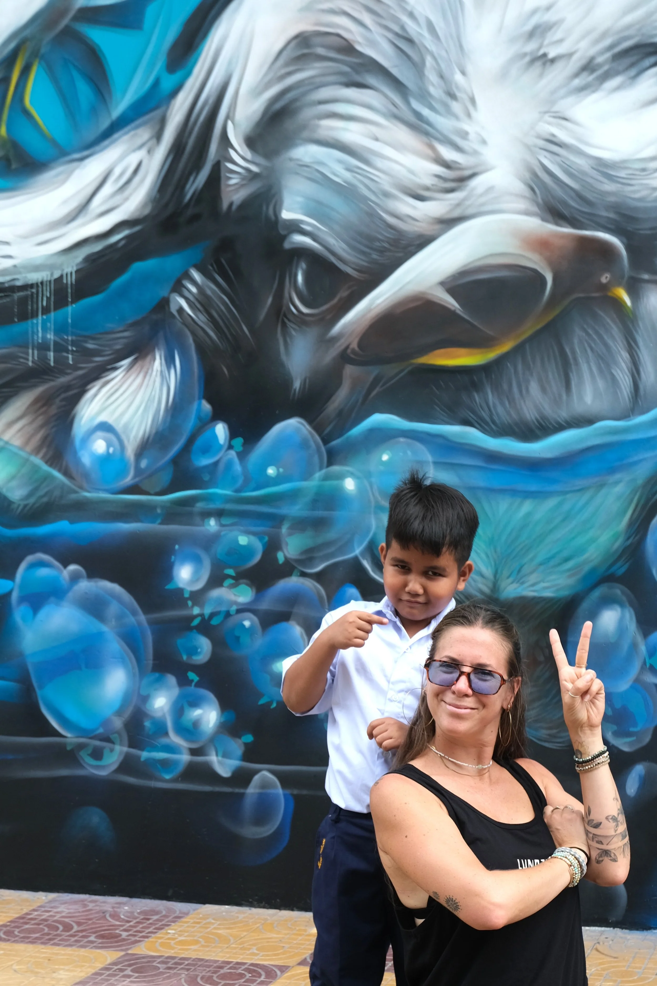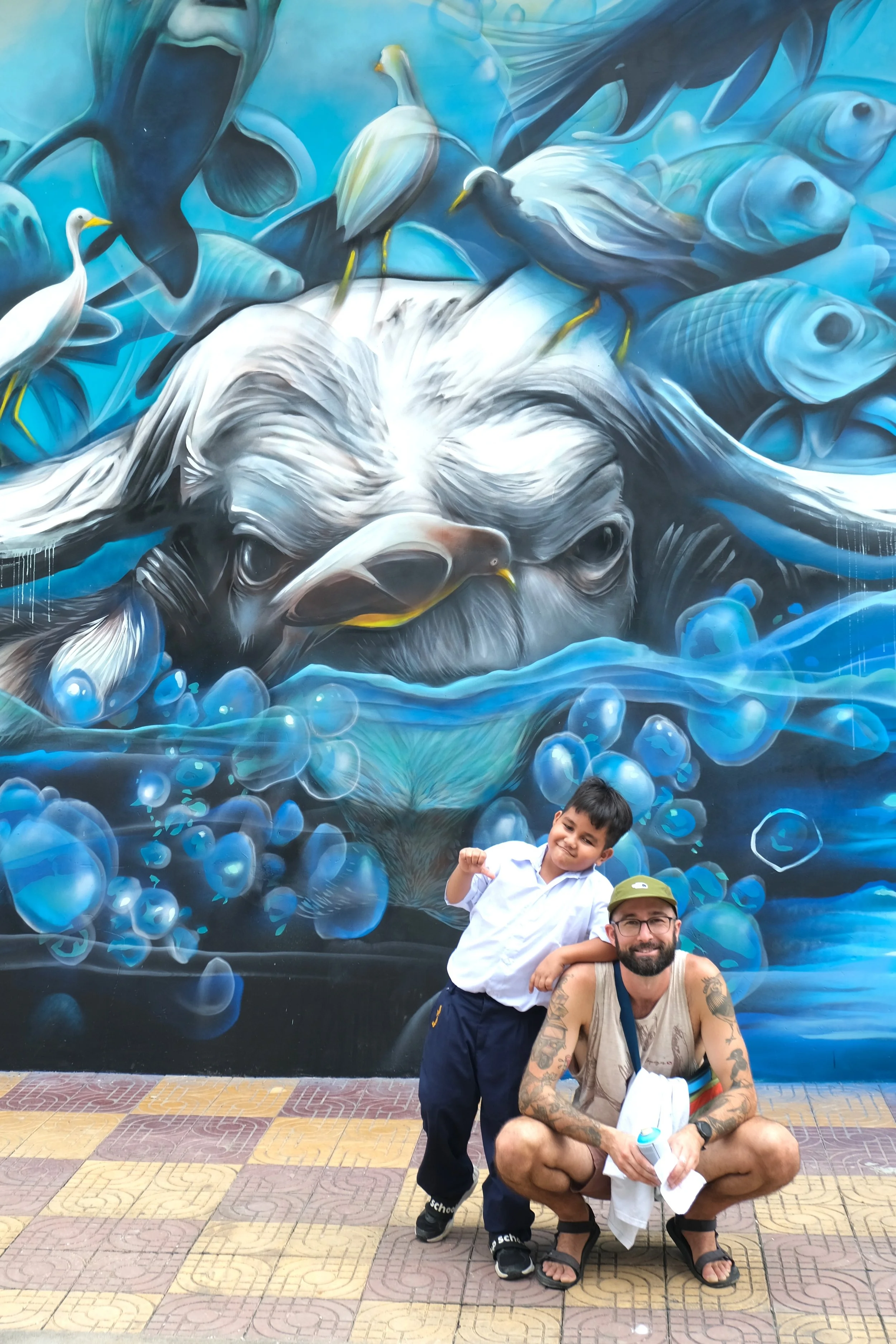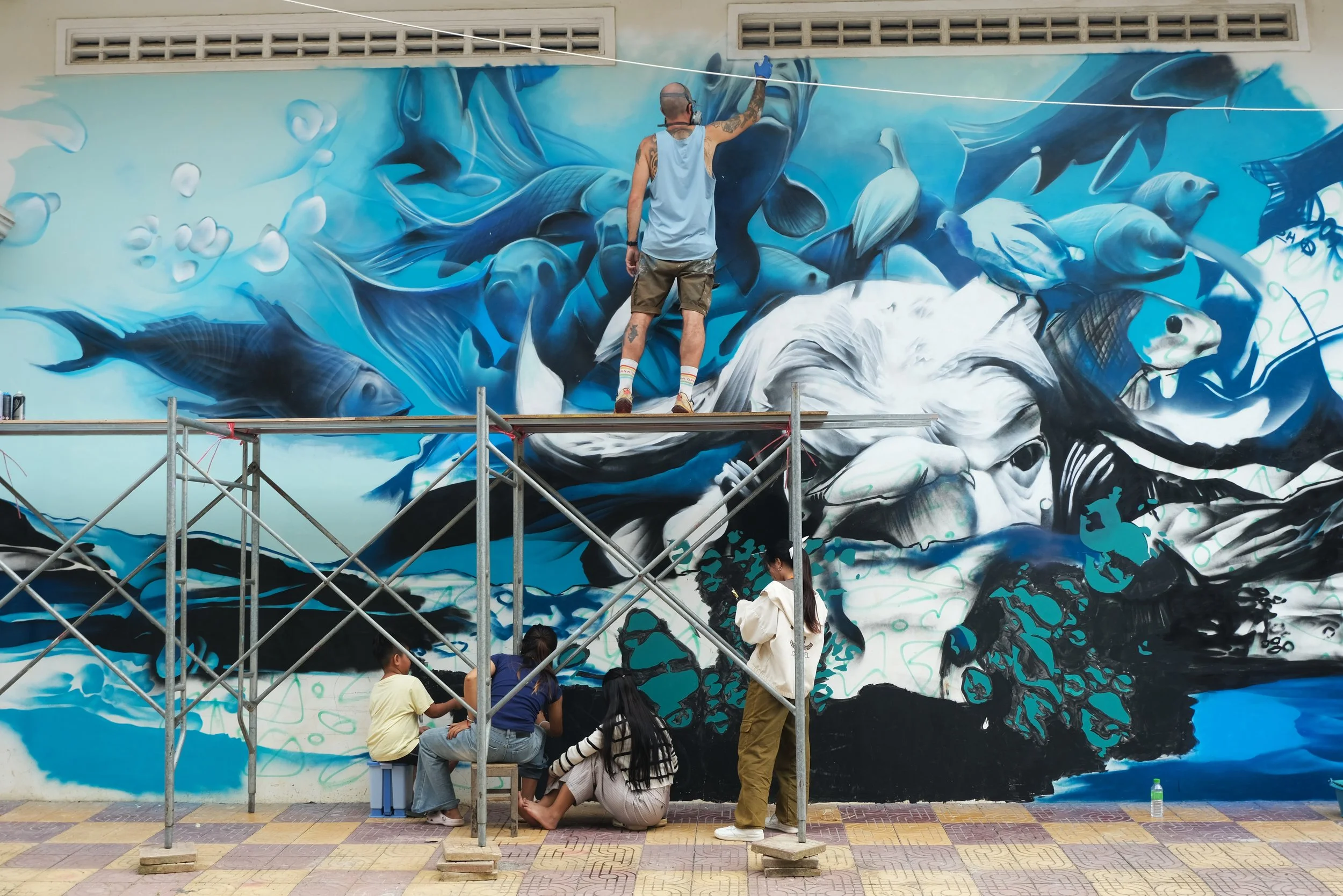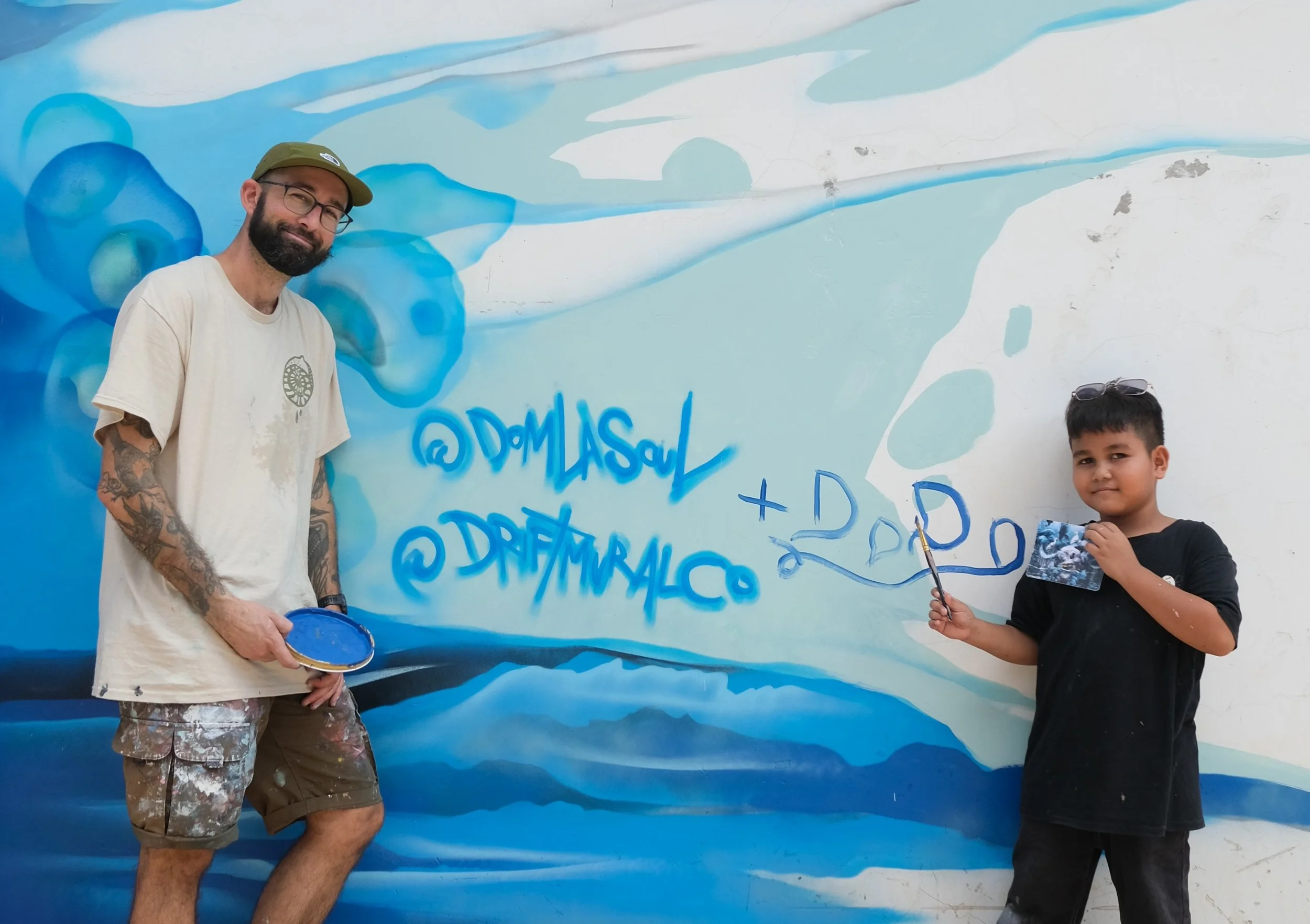 A heartfelt thank you to Fonki for the invitation, to the many organizers who made this year’s festival possible, and to our amazing assistant Seavhuo. Most of all, our gratitude goes to Dodo—the nine-year-old neighbor who spent his days in front of the mural sketching, chatting, and lending a hand with the painting. His joy and curiosity captured the true spirit of community that this mural represents.