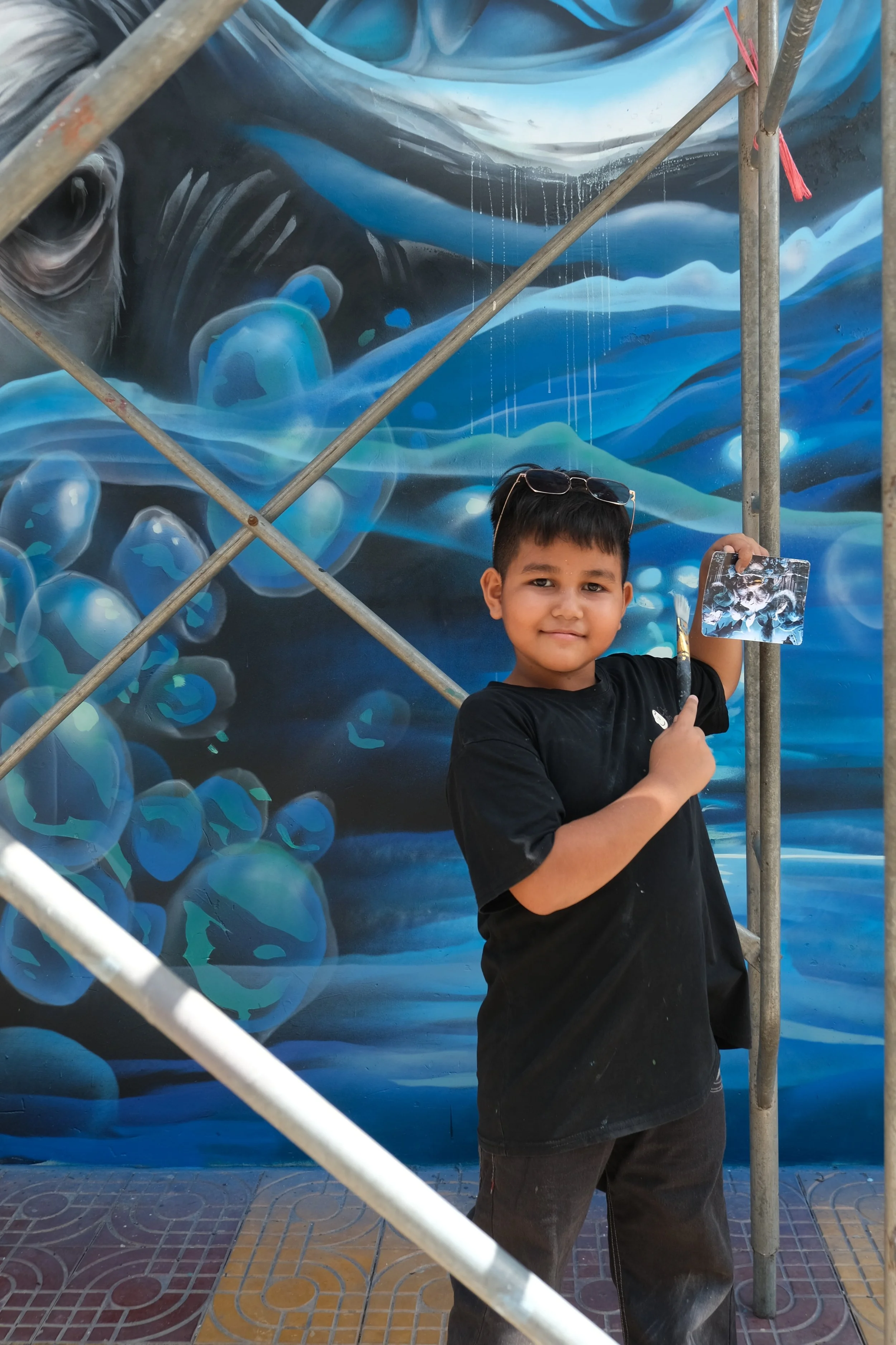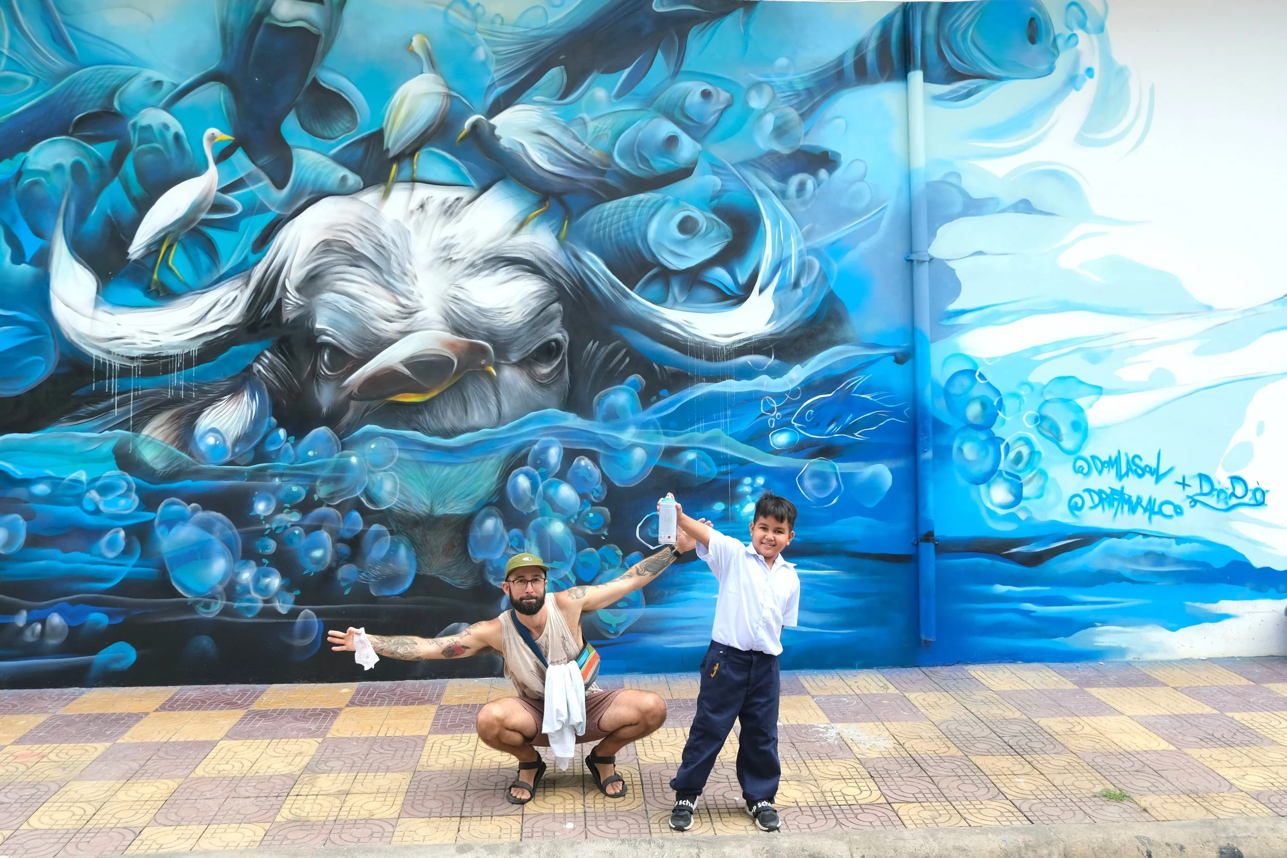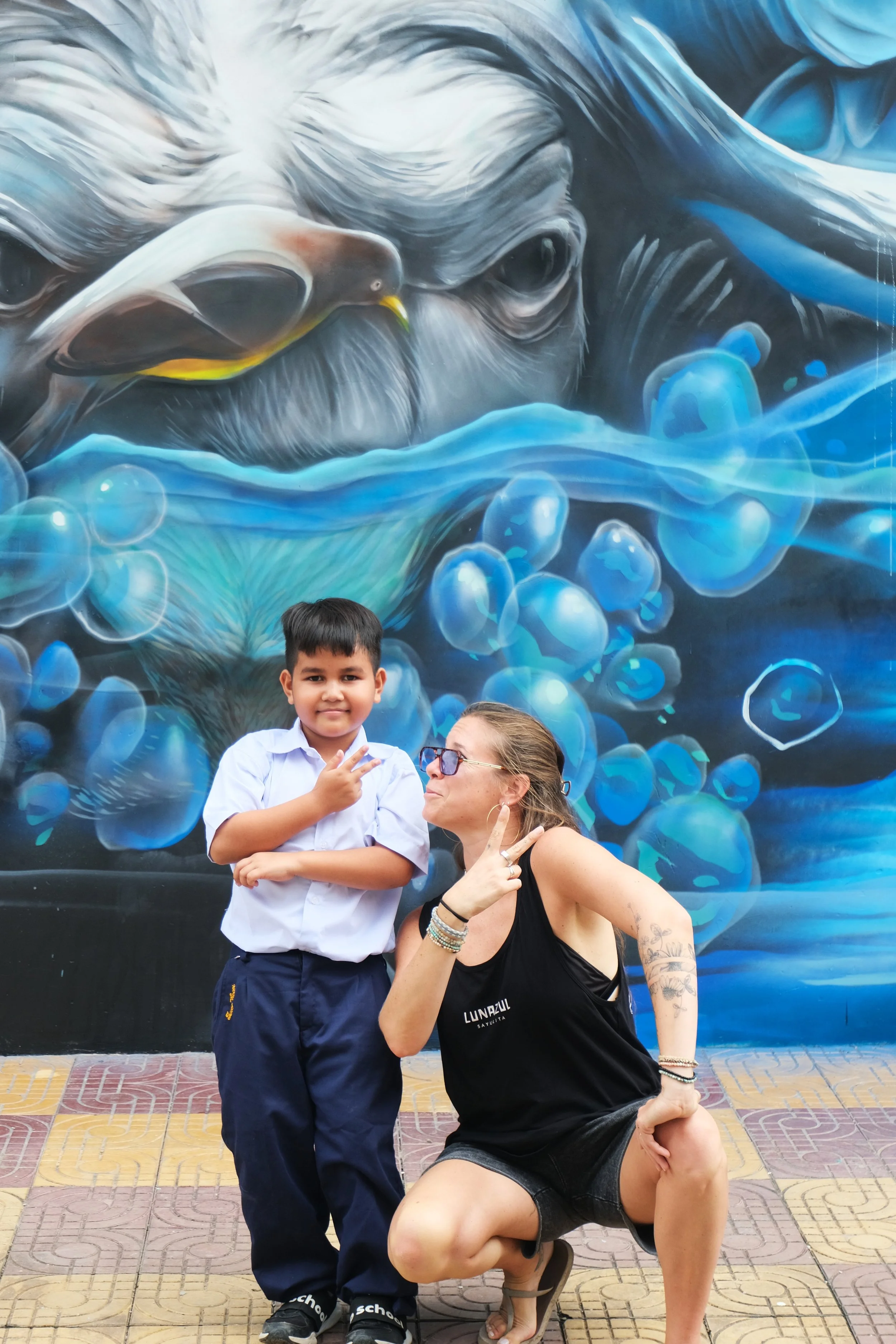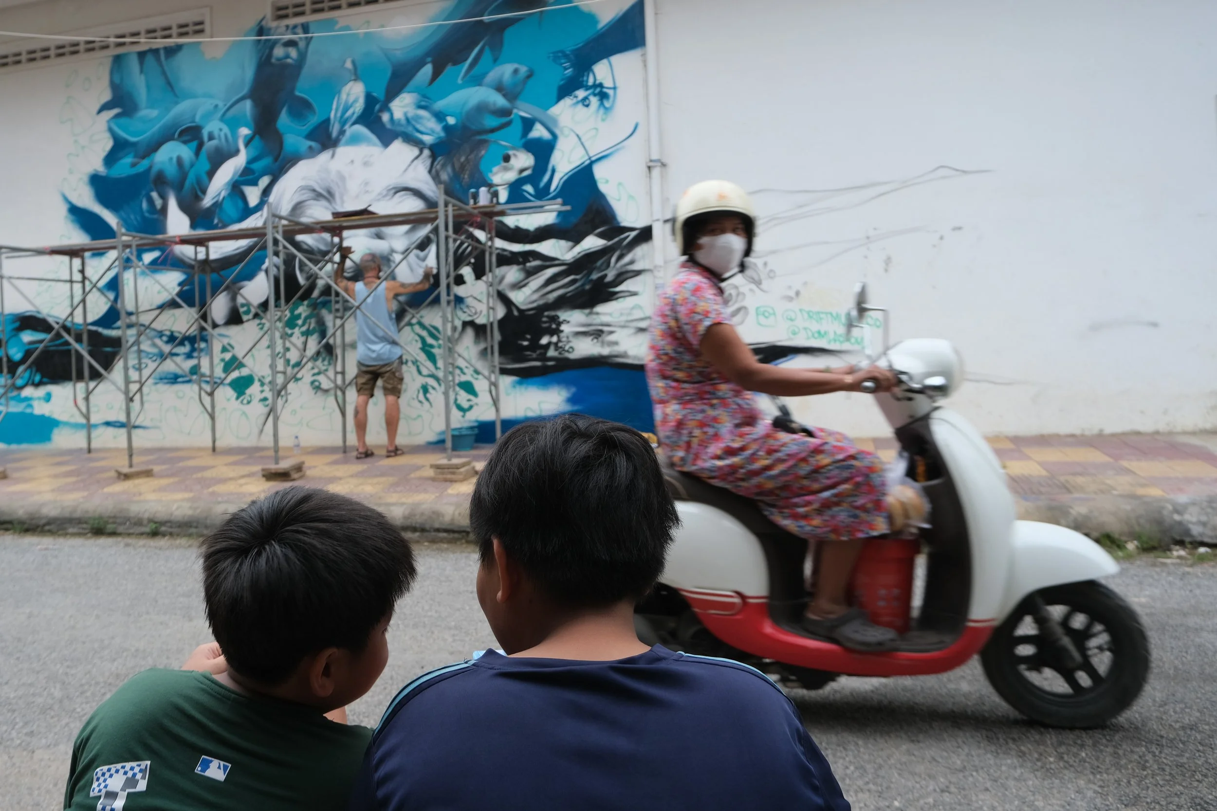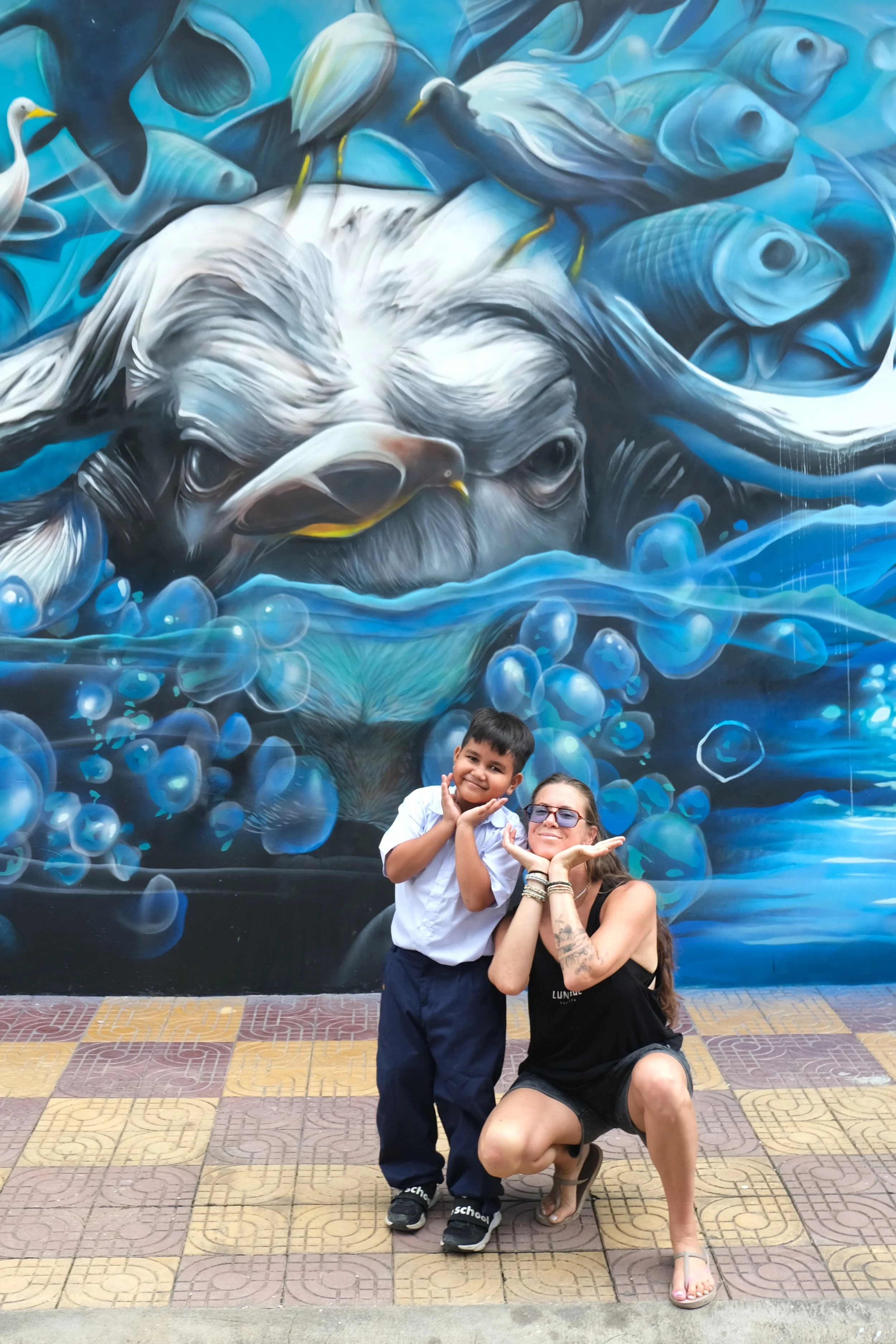 A heartfelt thank you to Fonki for the invitation, to the many organizers who made this year’s festival possible, and to our amazing assistant Seavhuo. Most of all, our gratitude goes to Dodo—the nine-year-old neighbor who spent his days in front of the mural sketching, chatting, and lending a hand with the painting. His joy and curiosity captured the true spirit of community that this mural represents.