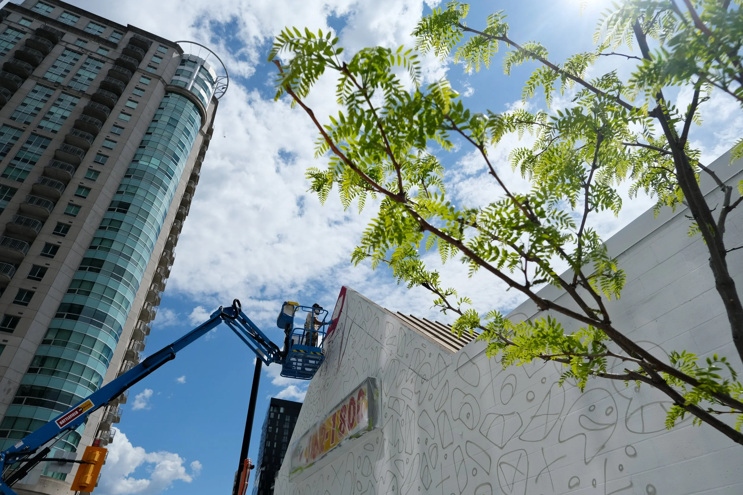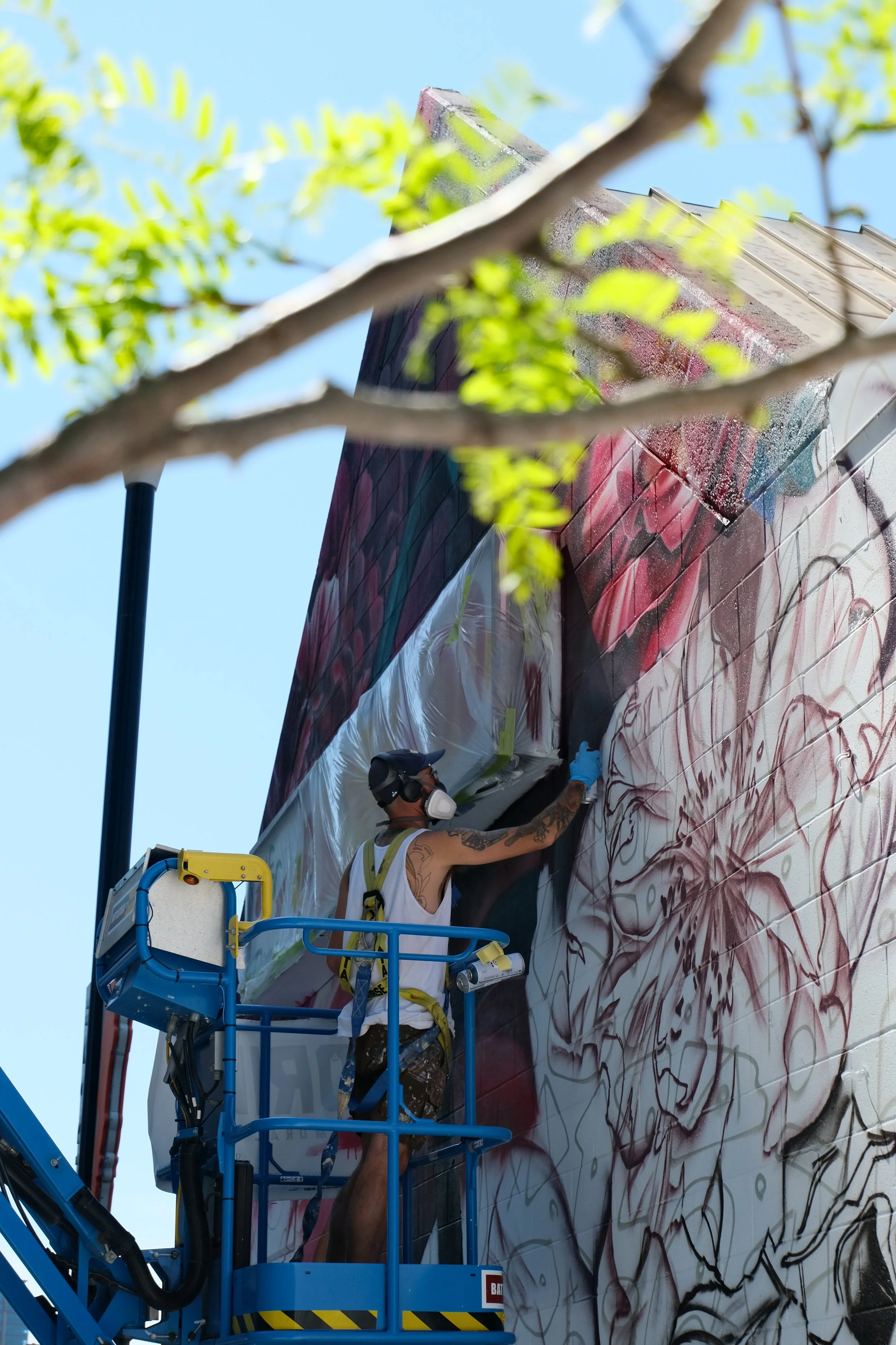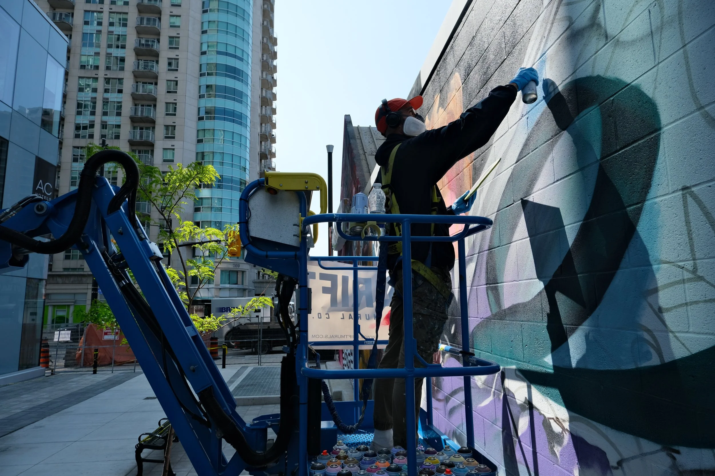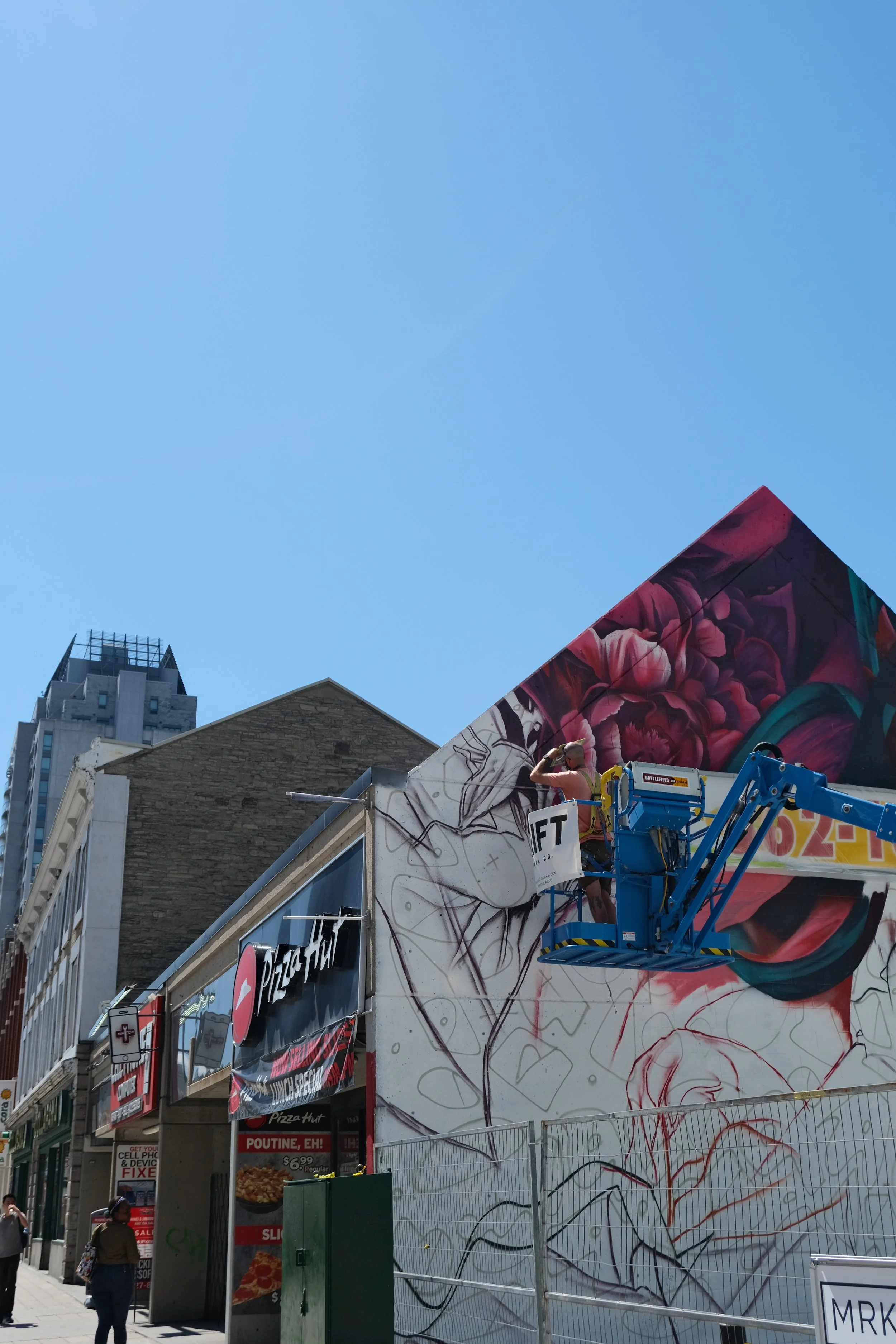 We’re excited to be back on home turf in Ottawa this summer, contributing to downtown’s evolving landscape with a new mural visible from the AC Marriott hotel. This vibrant piece draws inspiration from the city’s dynamic arts and culture scene, capturing the energy that defines Rideau Street. A dancer in motion reflects the rhythm of downtown life—echoing nearby cultural landmarks from music venues to the NAC—while abstract local florals nod to the ByWard Market and the Tulip Festival. Flowing ribbons guide the eye and symbolize the threads of community and the path of the Rideau Canal. This mural is meant to be an eye-catching spot that really vibes with the energy of this part of the city.